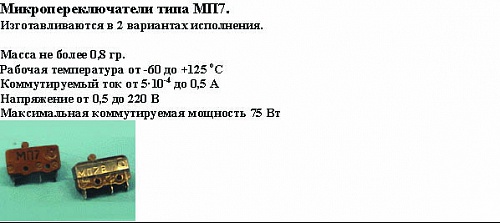 Микропереключатель МП5 (ОТК) УС0.360.074ТУ